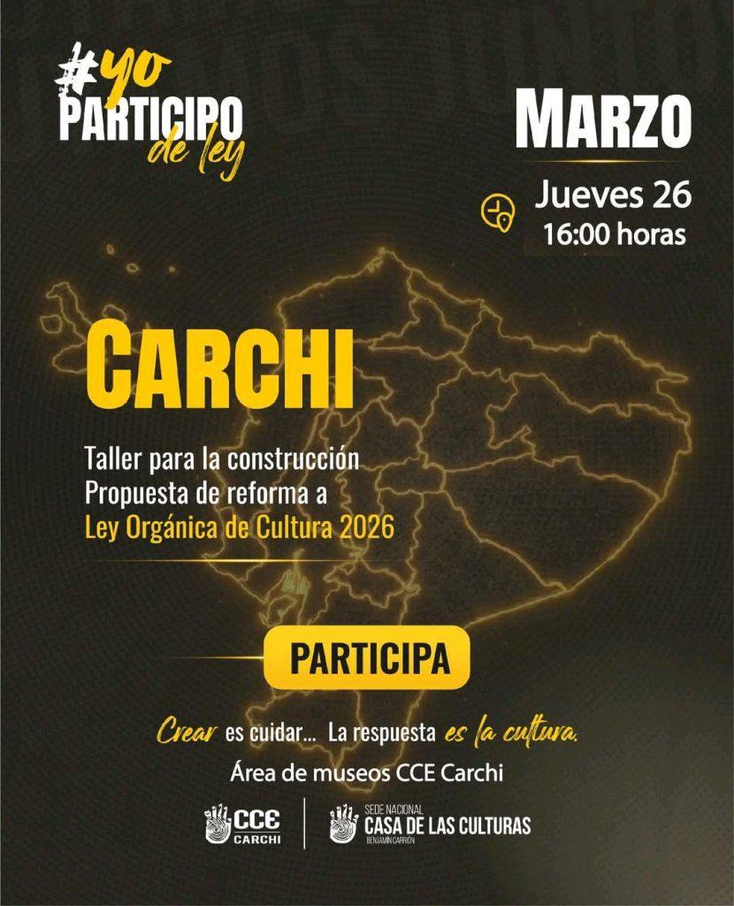 El Núcleo de la Casa de la Cultura Ecuatoriana en Carchi se integra activamente a la campaña nacional “Yo participo de ley, porque la cultura también decide”, con el objetivo de fortalecer el debate en torno a la reforma de la Ley Orgánica de Cultura y su impacto en el tejido social.